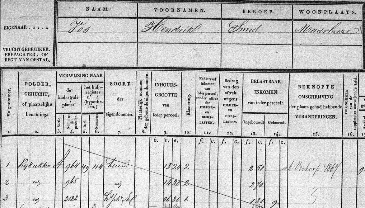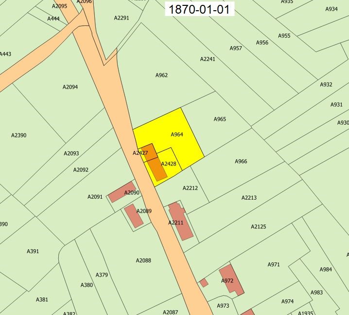 Perceel nummer | Eigenaar | Soort eigendom | 1854 | 1870 | 1873 | 1927 | 1962 |