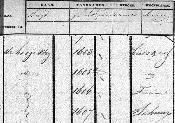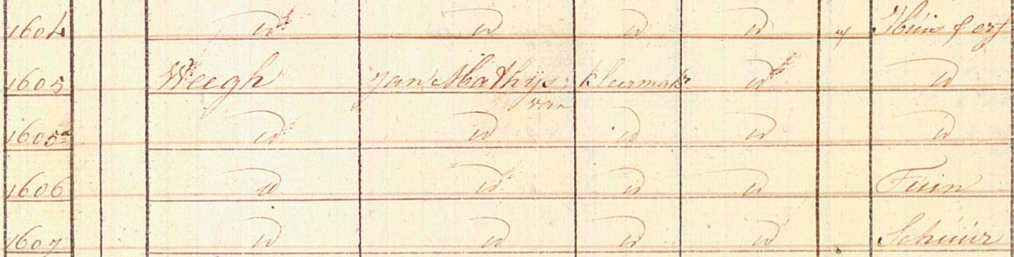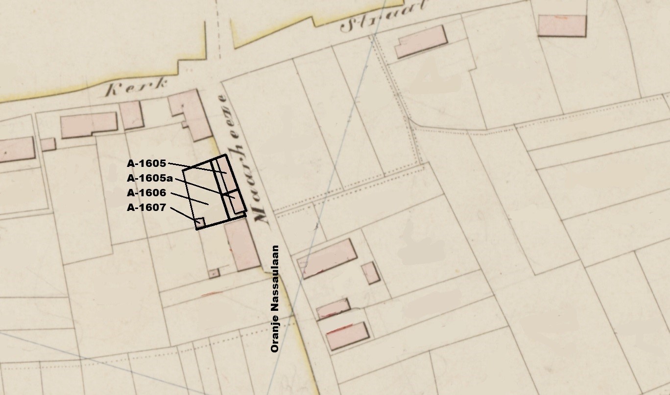 Opmerkelijk is dat het register slechts één huisadres laat zien, terwijl het kadaster twee panden registreert; A-1605 en A-1605a. Aannemelijk is dat een deel werkplaats was, en mogelijk zelfs een winkel.
