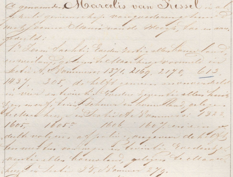 Na het huwelijk van dochter Joanna Maria met Marcellus van Kessel, en Allegonda met Johannes Corstjens, besluiten de kinderen tot verdeling van huis en gronden over te gaan.