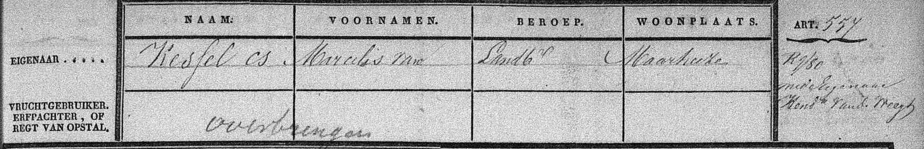 Marcellus van Kessel wordt samen met Hendricus van de Weegh de nieuwe eigenaar, terwijl Marcellus en echtgenote Joanna Maria het pand gaan bewonen.