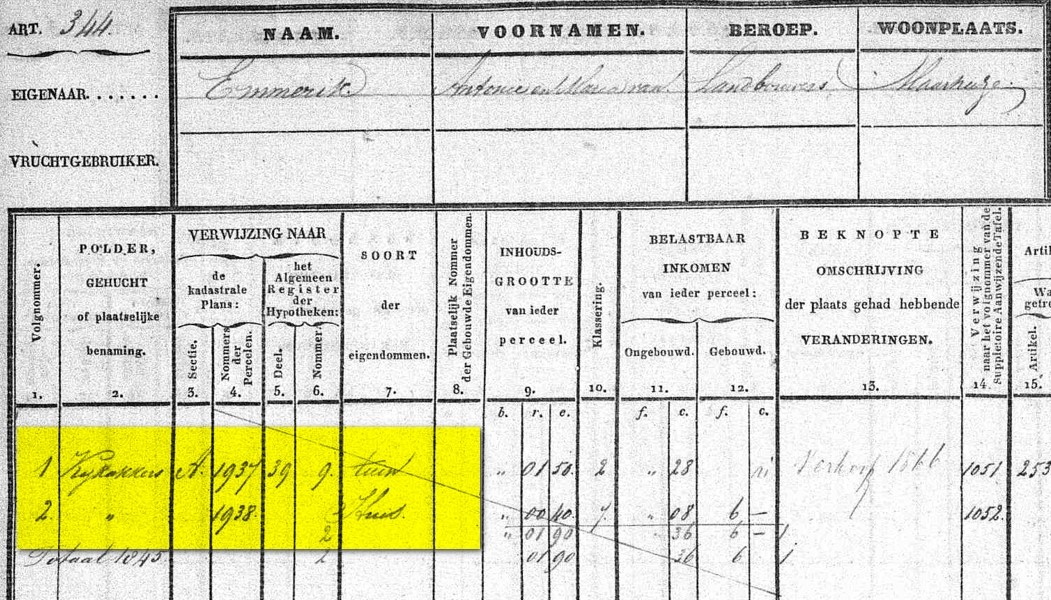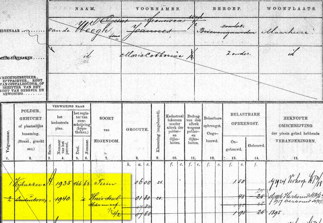 Het kadaster 1832, zoals te zien in de OAT (Oorspronkelijk Aanwijzende Tafel) schrijft Josephus in als de eigenaar van de panden A-980 en A-981. Het pand A-981 wordt ingeschreven als 'huis' en niet als huis met erf. Achter de huizen ligt 1800 m2 grond geregistreerd als tuin.