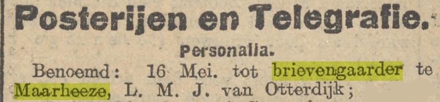 Na het overlijden van Joannes in 1912 wordt enige maanden later Louis Martinus Jacobus van Otterdijk, tot brievengaarder benoemd. Deze woont iets verderop aan de Oudenboom 104.