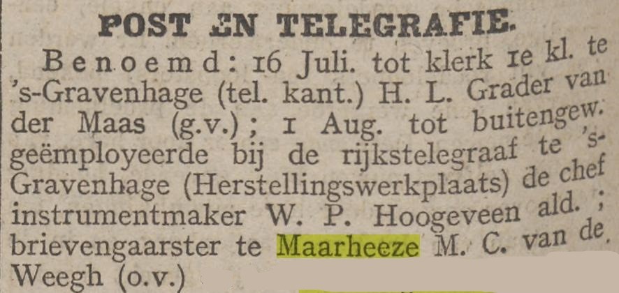 In 1919 verhuisd Maria Catharina naar Sittard, waar zij 30 april 1919 huwt met Cornelis Arends. De taak van brievengaarder wordt overgenomen door Jacobus Johannes Praats, zie voormalig huis A-1611 aan de Hage weg, Adriaan Schepens