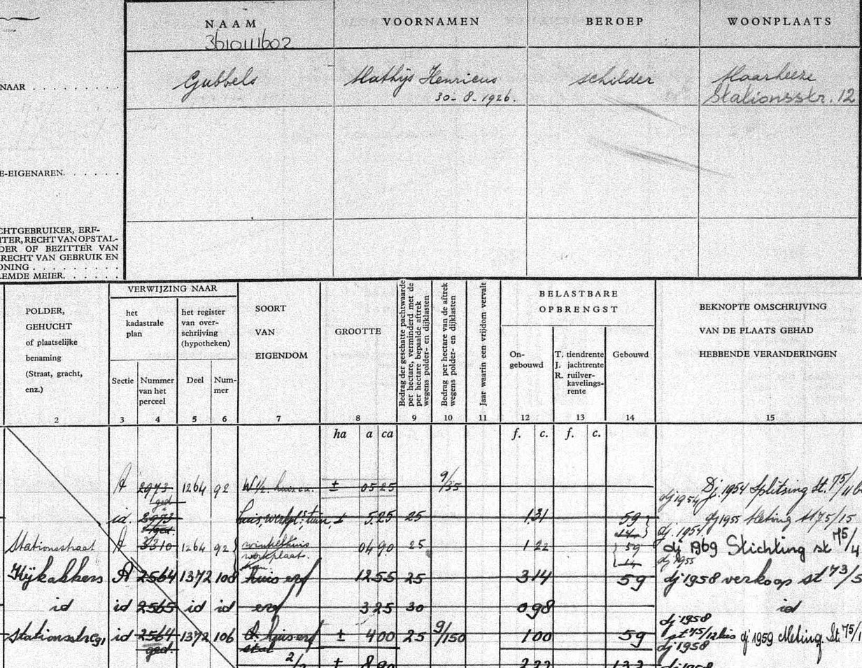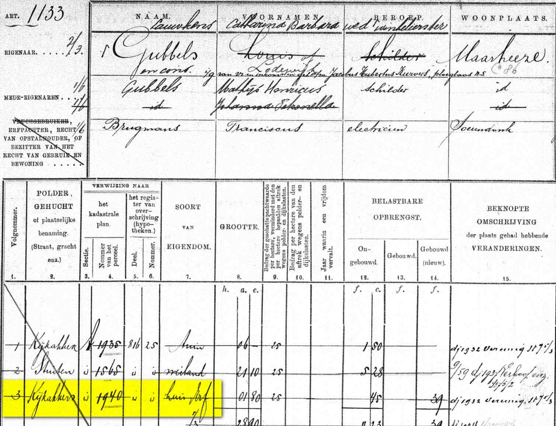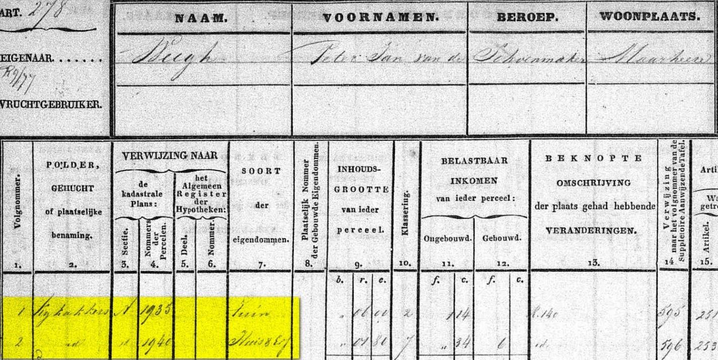 | Perceel nummer | Eigenaar | Soort eigendom | 1837 | 1931 | 1954 |