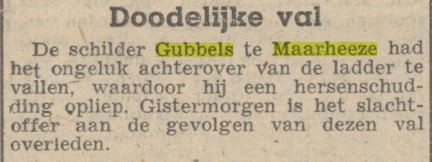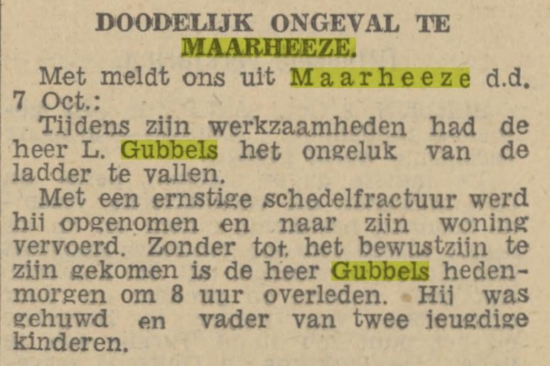 Lodewijk Gubbels komt door een noodlottig ongeval om het leven in 1941.