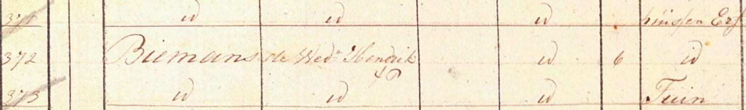 A-372 | De weduwe Hendrik Peter Bijmans | Huis en erf | |