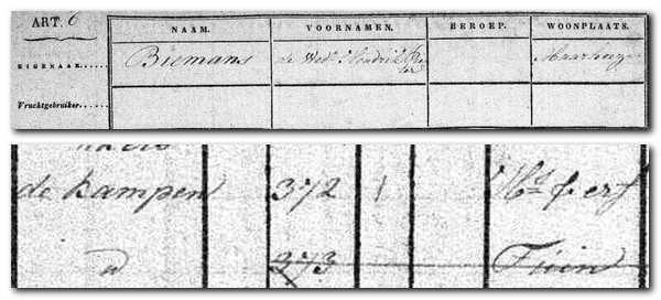 PKL (Persoonlijk Kadastrale Legger) Weduwe Hendrik Pieter Biemans
