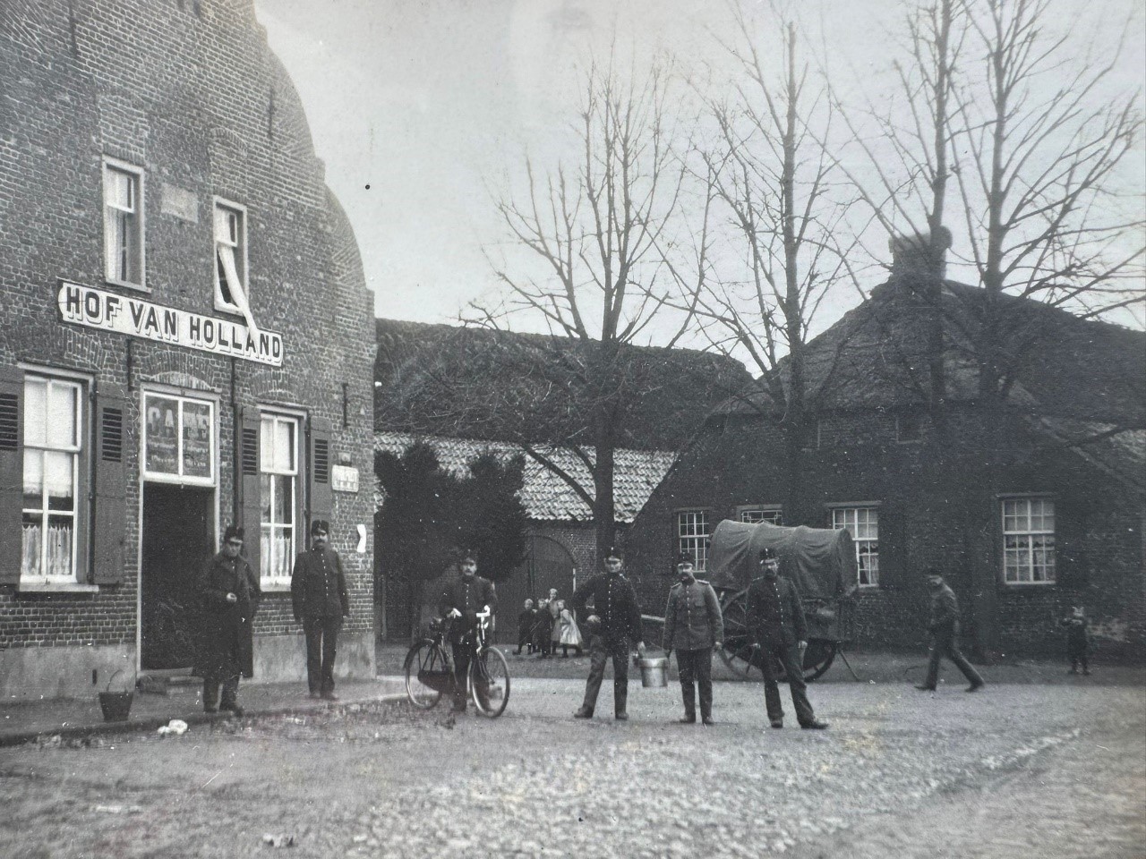Foto rond 1916 Links op de foto het Hof van Holland, rechts aan de overkant het pand Biemans-Flipsen.