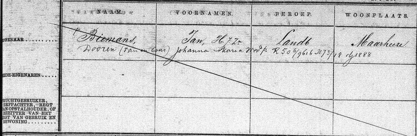 De enige zoon, Joannes Biemans huwt Maarheeze 9 februari 1852 met de uit Leende afkomstige Joanna Maria van Dooren en blijft met zuster (Joanna) Maria op de boerderij inwonen.