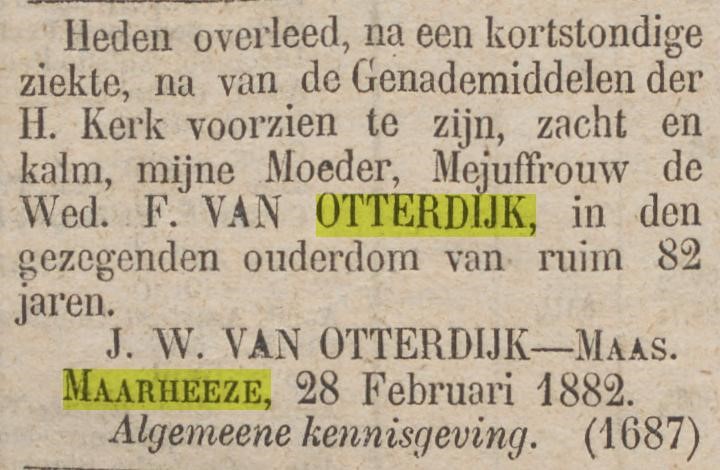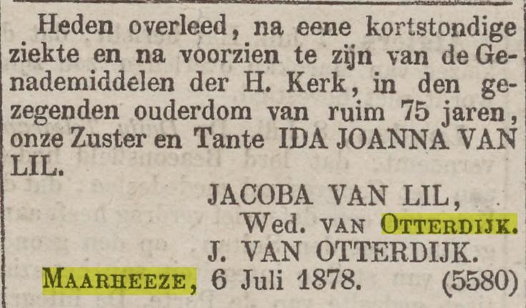 Drie jaar later, Maarheeze 28 februari 1882 overleed moeder Jacoba van Lil.