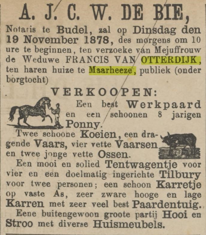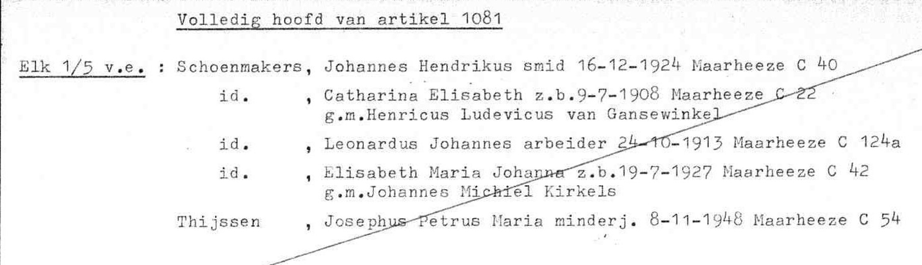 Hij laat een huis en erf met tuin na aan de drie kinderen van Hyacinthus, gelegen aan de Oudenboom in Maarheeze. Zij worden ieder voor 1⁄3 deel eigenaar. Dit pand komt later hieronder terug als Jan van Otterdijk (dan eigenaar) er gaat wonen.