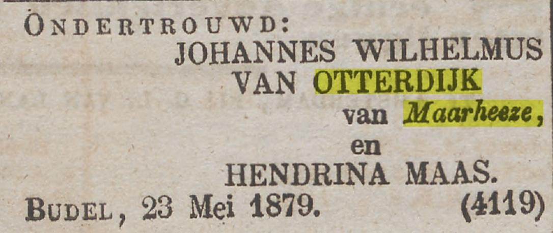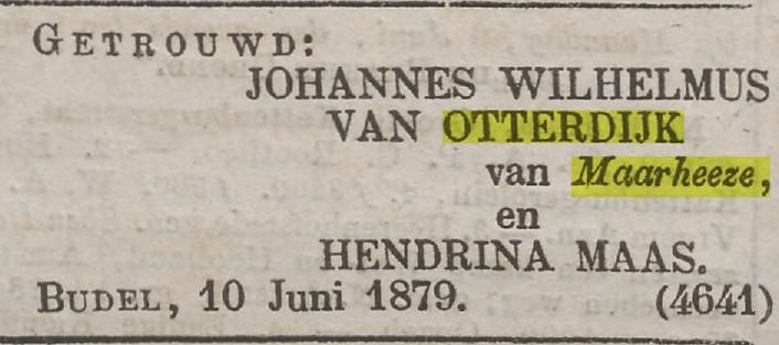 Jan huwt Budel 10 juni 1879 met Hendrina Maas (1855-1887).