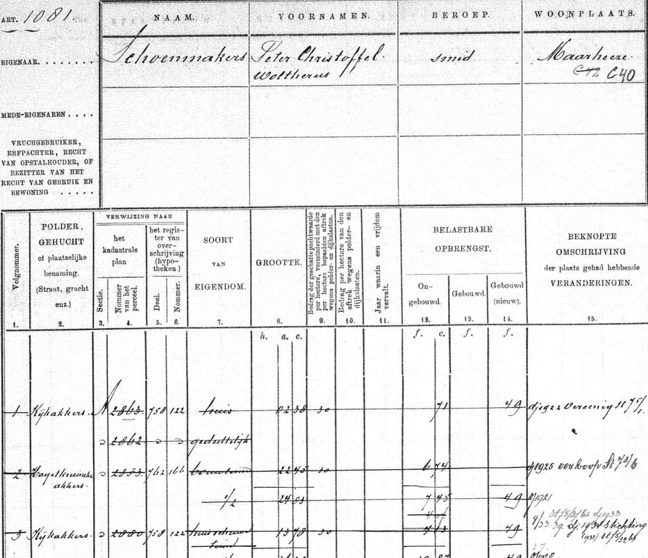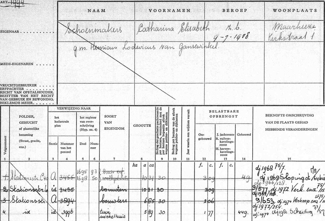 Perceel nummer | Eigenaar | Soort eigendom | 1879 | 1915 | 1939 | 1964 | 1971 |