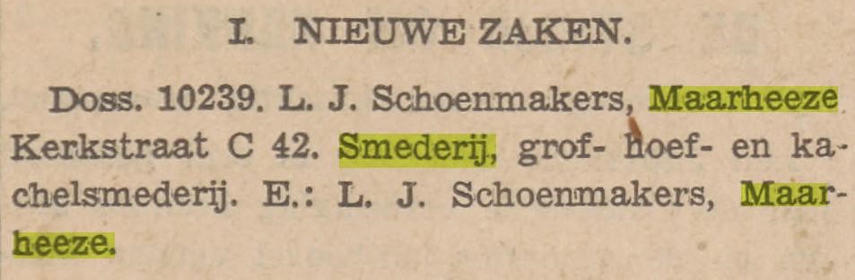 In 1937 wordt de smederij nog opnieuw ingeschreven in de Kamer van Koophandel, nu op naam van zoon Leonardus Johannes.