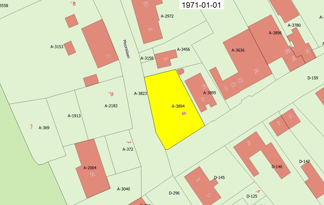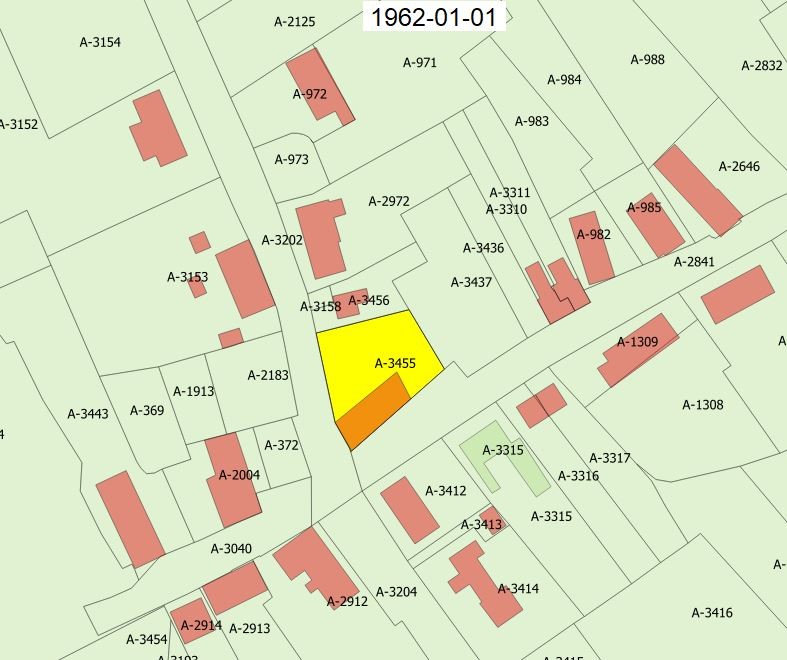 ![]() | In 1879 worden de percelen samengevoegd tot één, en het perceelnummer verandert in A-2498. |