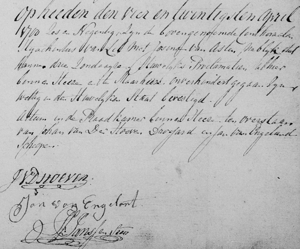 1796 Schepenbank Heeze trouwinschrijving Hyacinthus van Lil en Justina van Asten