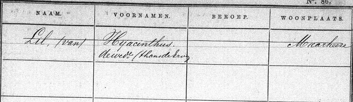 Zoon Johannes Wilhelmus woont dan met moeder Jacoba en tante Ida Johanna in het huis wat eens van Hyacinthus van Lil was.
