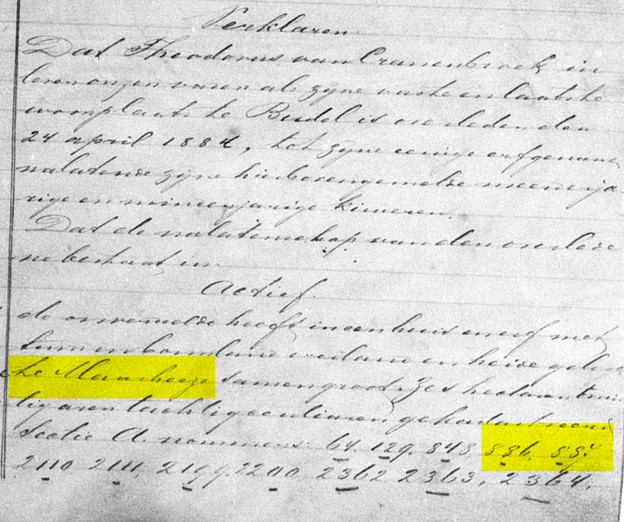 1887 Uitsnede memorie van successie Theodorus van Cranenbroek