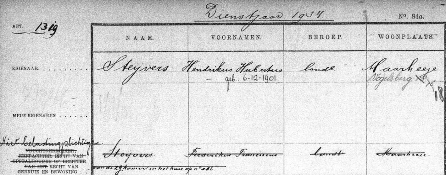 De in Budel wonende Theodorus van Cranenbroek gehuwd met Joanna Verberne staat nog steeds ingeschreven als feitelijke eigenaar van de boerderij.