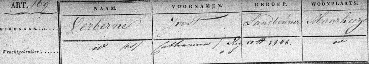 Bij de invoering van het kadaster in 1832 staat Joost samen met echtgenote Catharina als eigenaar geregistreerd.