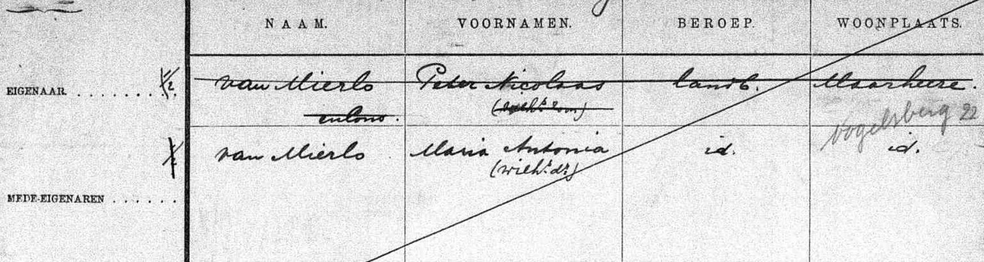 Vanaf 1889 staat Antonius van Mierlo, de nieuwe eigenaar als hoofd van het huishouden ingeschreven.