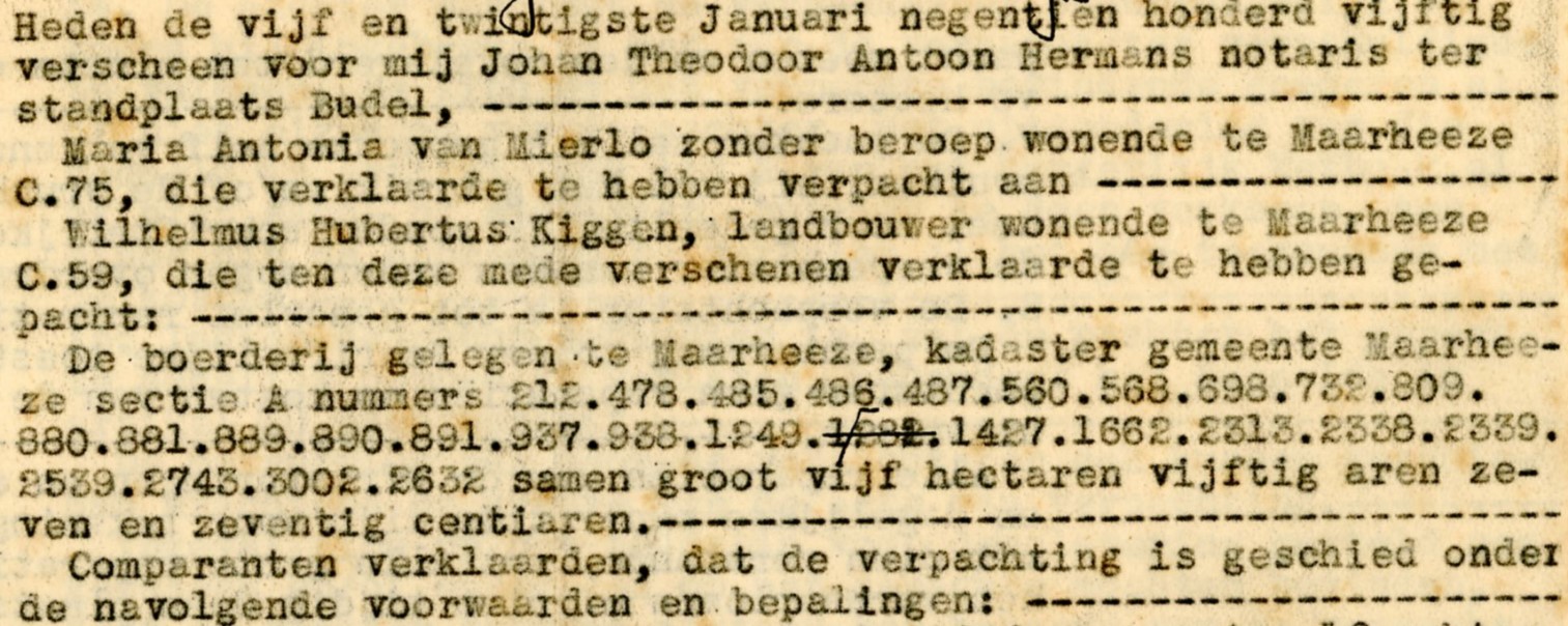 Uitsnede pachtovereenkomst Marieke van Mierlo en Wiel Kiggen |