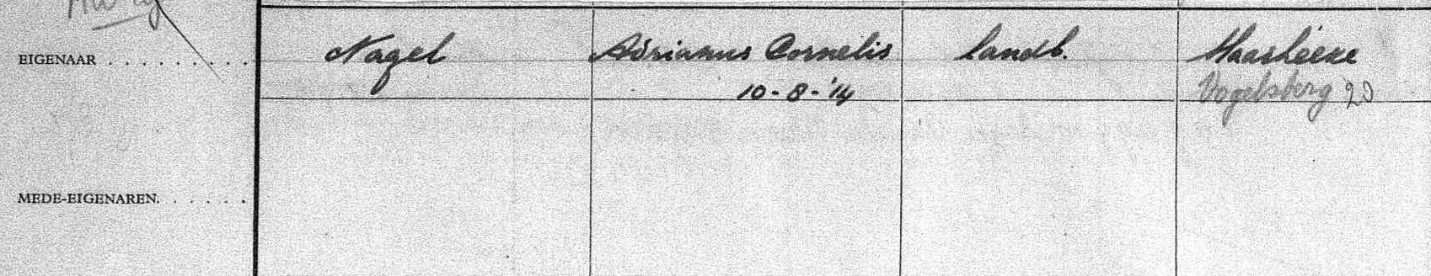 Zoon Bernardus Johannes woont dan op nummer 18, dochter Godefrida Maria gehuwd met Jacobus Henricus van Gansewinkel woont op nummer 18A, en na het overlijden van vader Arie, woont dochter Maria Johanna op nummer 20.