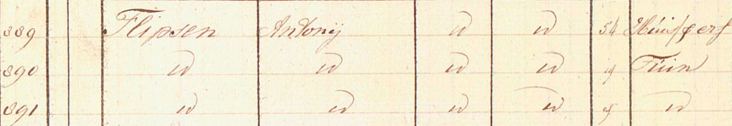 Antonij Flipsen, geboren Maarheeze 23 december 1778 overleden Maarheeze 25 januari 1835. Huwt Maarheeze 13 januari 1816 met de eveneens uit Maarheeze afkomstige Antonetta Verelzen geboren 5 mei 1782, overleden Maarheeze 12 februari 1853.