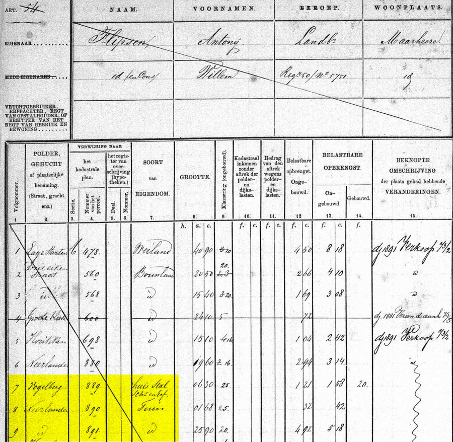 P.K.L. (Persoonlijk Kadastrale Legger) Antonij en Willem Flipsen |