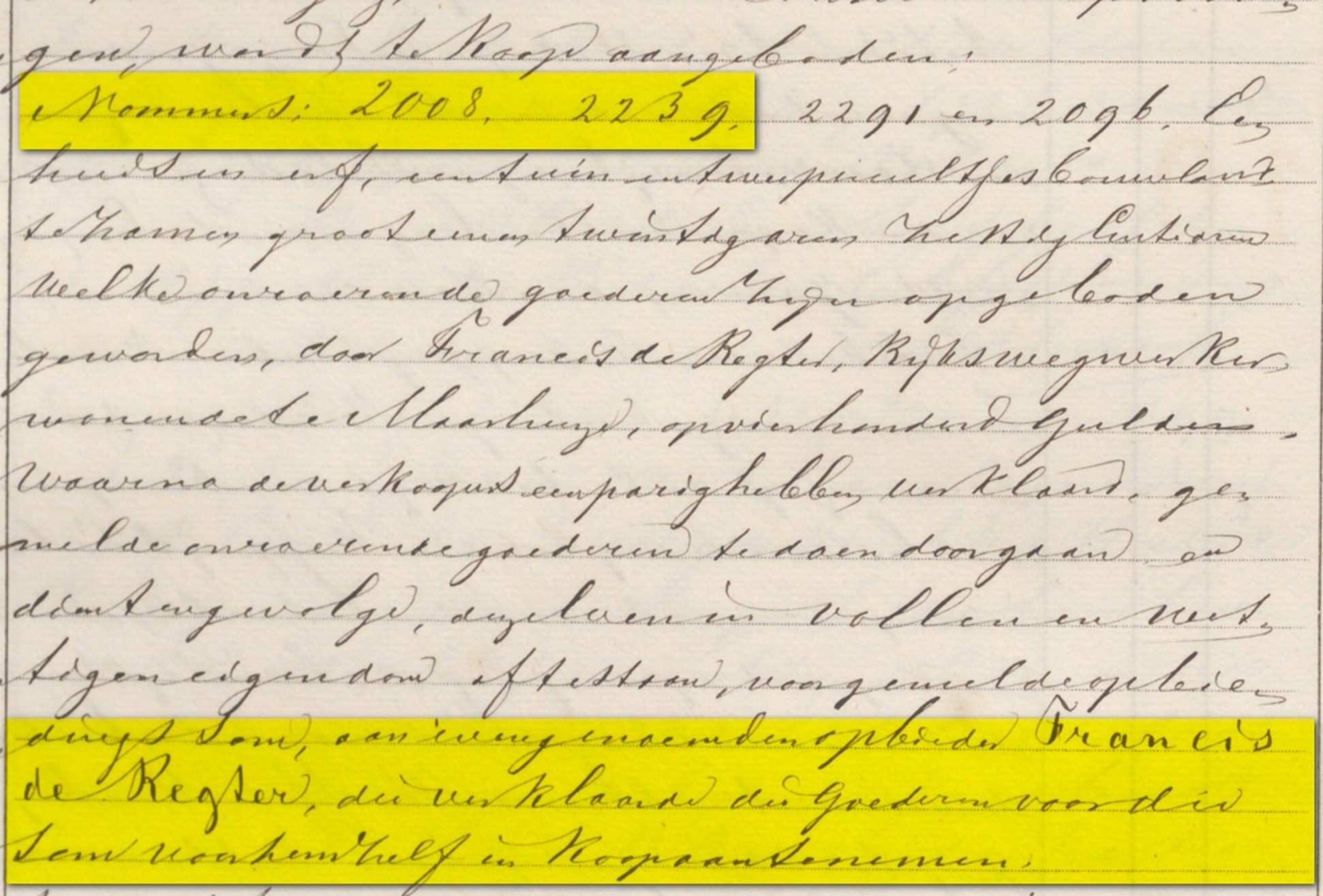 In 1877, wordt de boerderij voor de som van 400 gulden verkocht aan Francis de Regter die later tevens het naastgelegen perceel koopt.