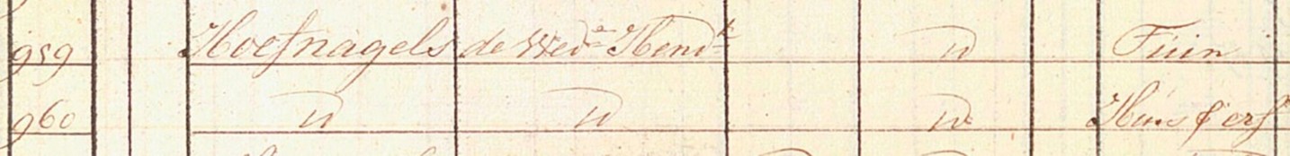 | A-960 | Weduwe Hendrik Hoefnagels | Huis en erf | A-2008 | A-2008 | A-2489 |