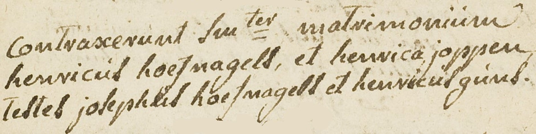 Hendrik Hoefnagels en Hendrina Joppen trouwen Maarheeze 14 januari 1787.