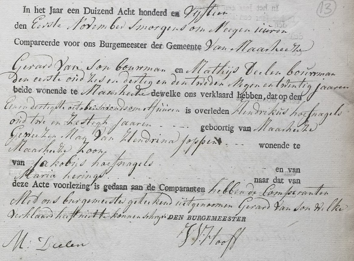 Hendrik overleed Maarheeze 31 oktober 1815.
