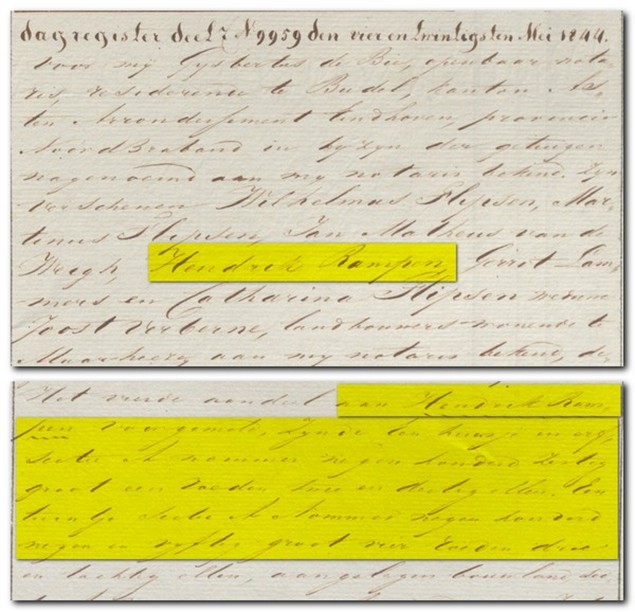 1844 Uitsnede aankoop akte Hendrik Rampen |