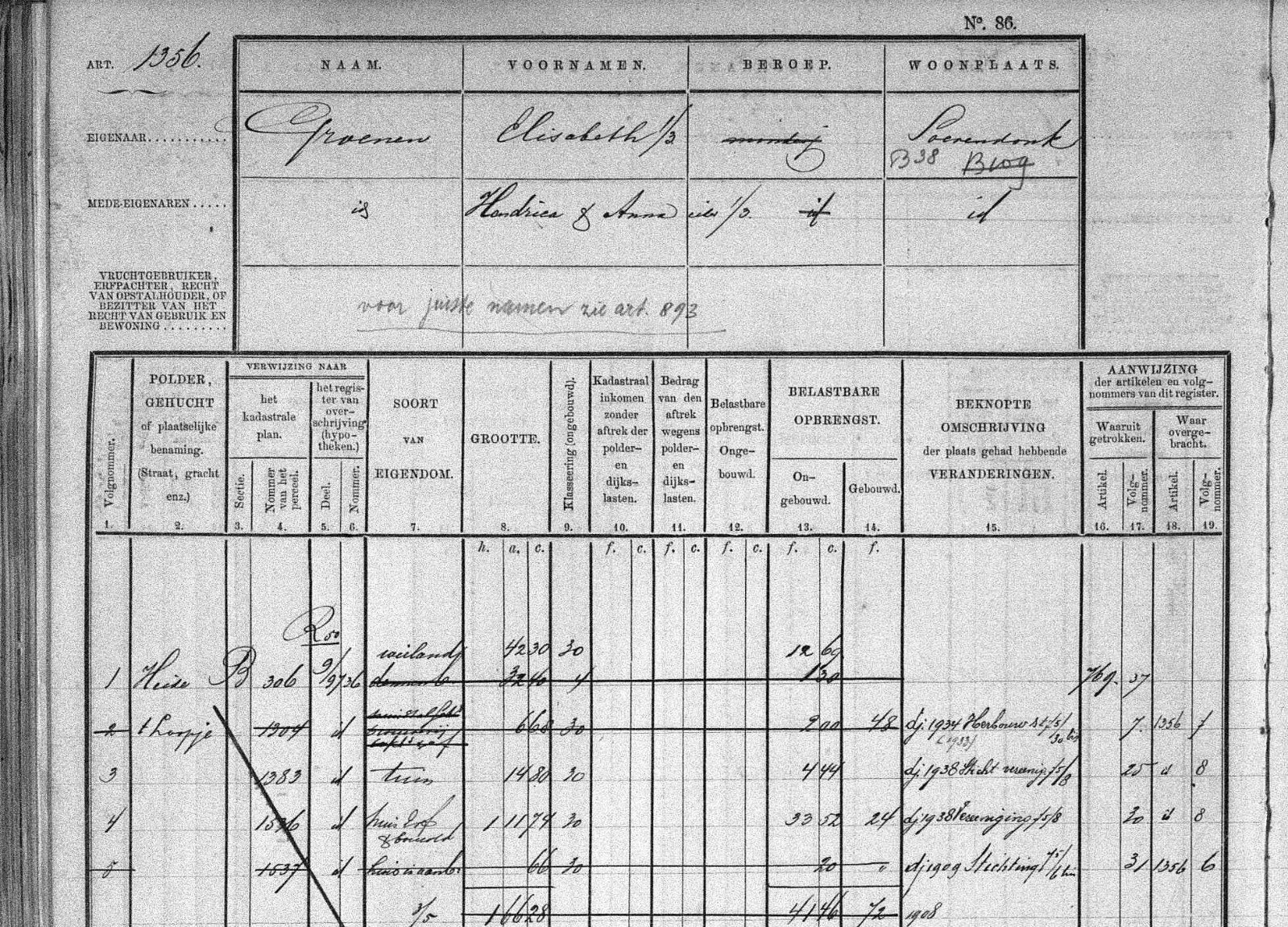 B-1422 bouwland en B-1423 huis en erf eigenaar Theodorus van der Sanden en mede eigenaren
