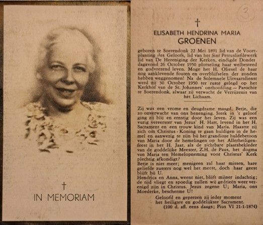 Elisabeth Hendrica Maria | Groenen | 22-05-1891 | Soerendonk | achter nicht | |||