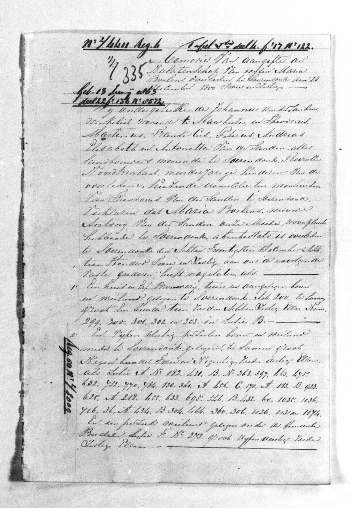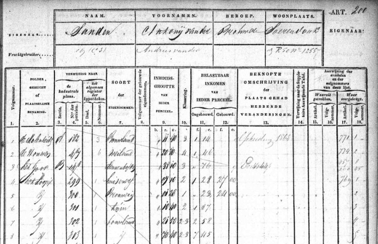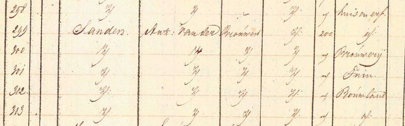 Voor Antonij van der Sanden werd artikel 200 met o.a. huis en erf B-299 geopend. Zijn beroep is brouwer.