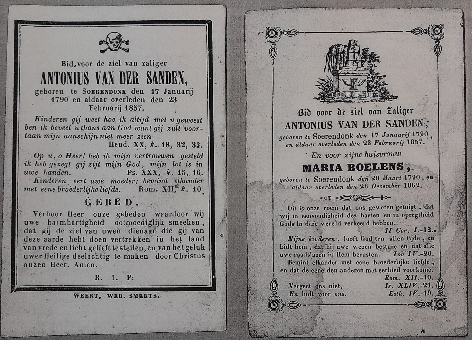 Antonius | Van der Sanden | 27-01-1790 | Soerendonk | Hoofd | bierbrouwer | 23-02-1857 | Soerendonk |