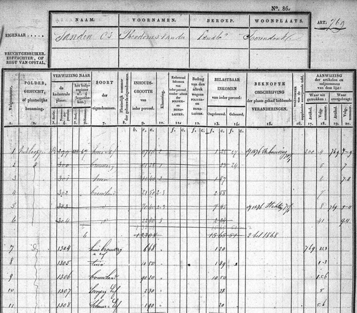 Na het overlijden van moeder Maria van der Sanden-Boelens in 1862 wordt zoon Theodorus van der Sanden de hoofdbewoner van huis en erf B-299 met artikelnummer 769.